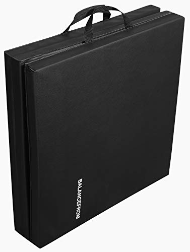 BalanceFrom 1.5″ Thick Tri-Fold Folding Exercise Mat with Carrying Handles for MMA, Gymnastics and Home Gym Protective Flooring (Black)