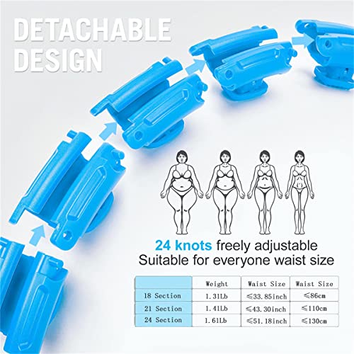 ➤[DETACHABLE & ADJUSTABLE ] : This smart weighted hula hoop is Consist of 24 detachable parts,each knot is detachable.The weighted hoop for home exercise can be adjusted from 16(suit for 80cm / 31 inch) to 24(120cm / 47 inch) sections,you can choose your own Hoola hoop according to your waistline by simply pressing a button.