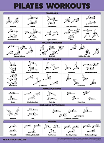 Palace Learning 4 Pack – Dumbbell Workouts + Bodyweight Workouts + Stretching Exercises + Pilates – Set of 4 Workout Charts (18” x 24”, LAMINATED)