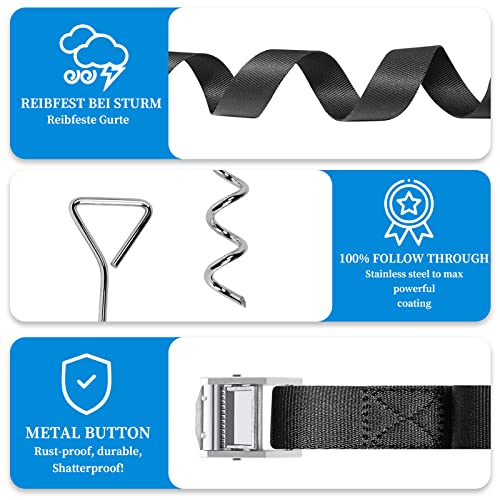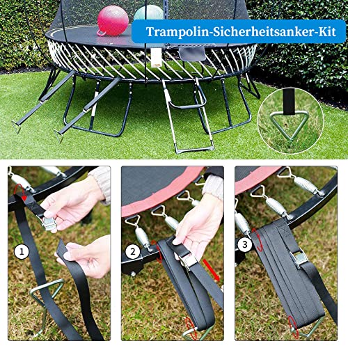 Package: 4 trampoline anchors, 4 adjustable safety straps with metal buckles and 1 trampoline spring pull tool, which easily connected to the metal buckles for fast assembly or dismantling.
