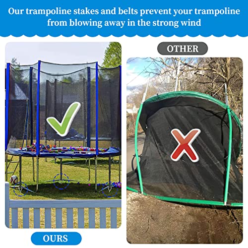 Keep Trampoline Safe: Trampoline won’t move a bit after a strong wind no matter on grass or sand. Trampoline Stakes can resist strong wind and rain.