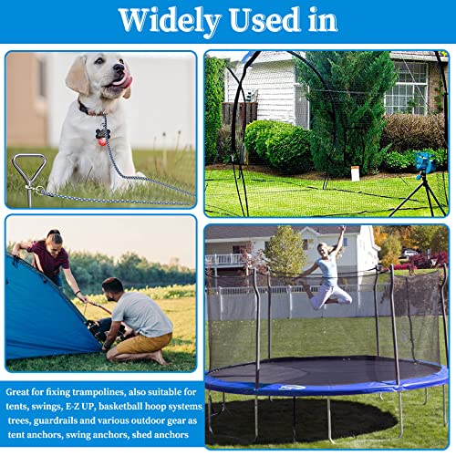Trampoline Stakes, Silver Spiral Ground Trampoline Anchors with Spring Pull Tool for Tent, Securing Trampolines, Garden…