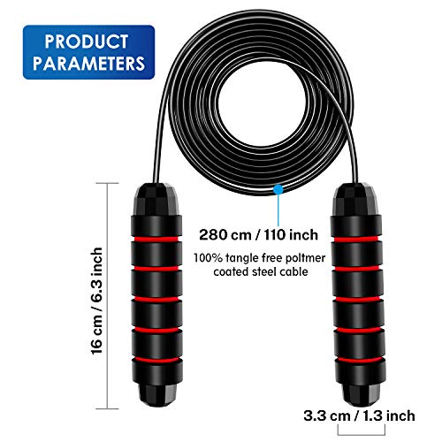 Specification: XMIAO Jump Rope, 2 Pack Skipping Rope with Ball Bearings Tangle-Free Rapid Speed Steel Wire, Adjustable 6” Memory Foam…