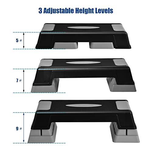 SPORFIT Aerobic Step Platform for Exercise w/Risers,Workout Step Height Adjustable 5″-7″-9″,Fitness Step 450lbs Capacity,Non-Slip Exercise Step Deck for Home/Gym