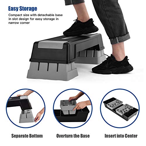 【High Quality Material-Stable and Durable】Aerobic fitness stepper adopt latest environment-friendly PP material which is strong enough.Grid bearing columns at the bottom let it more stable and durable than other ordinary step.Hold up to 450 lbs!No odor and children use safely.