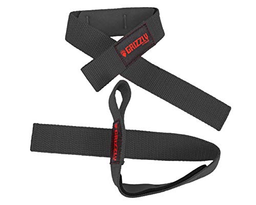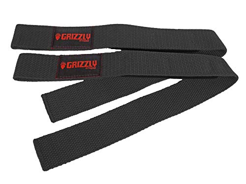 Grizzly Fitness Padded Cotton and Nylon Weight Lifting Wrist Straps for Men and Women | Sold in Pairs | One Size | Used by Pros to increase Grip Strength, by reeducing Slipping &n Fatigue while Lifting and Pulling | 1.5” wide durable military strength cotton | Loop-Design for easy on / off | Neoprene padding for comfort