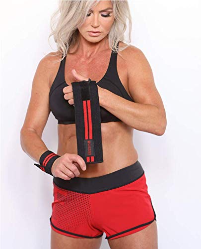 Grizzly Fitness Premium Red Line Weight Lifting Wrist Wraps for Men and Women | Sold in Pairs | One-Size | Used by Pros to provide Wrist support and Stability during Lifting and Pulling | 3″ Wide x 11″ Long Strong Pro Grade Thick, Elastic Cotton | Thumb Loop to Hold in place for Easy On | Fully adjustable Velco closure | Available in White and Black