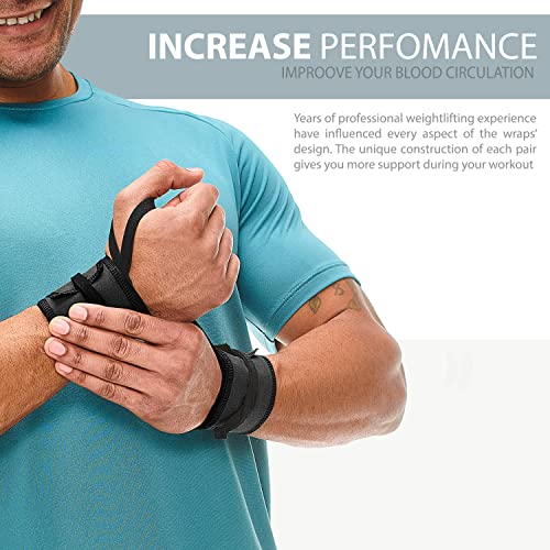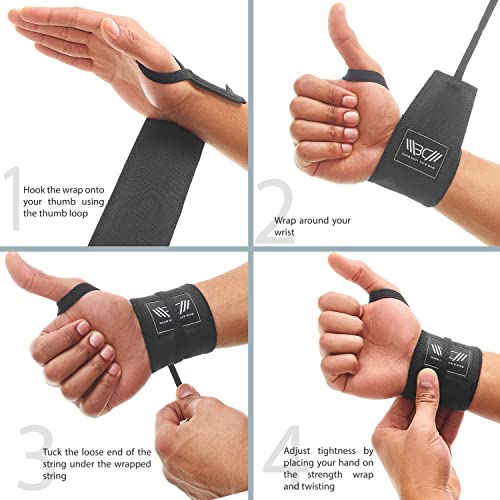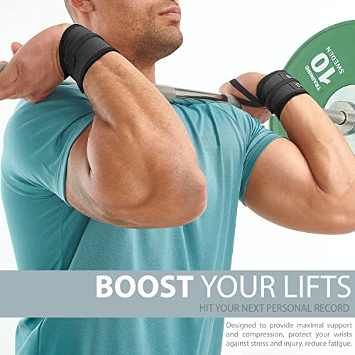 Ultra-strong & Adjustable: WBCM Weight lifting wrist wraps for men & women are easy to put on and off due to elastic strap and anchor system. Simply slide your thumbs through the thumb loops and wrap around your wrists. Lift more with our lifting bands and feel no more wrist pain.