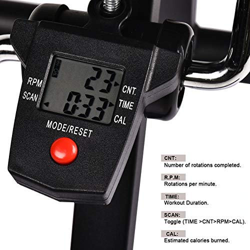 【LCD Digital Monitor】 – With the built-in LCD monitor, allows users to track the progress of the workout at any time, the electronic display shows exercise time, revolution count, revolutions per minute(RPM), calories burned. The easy to read screen alternates automatically through a sophisticated scan feature