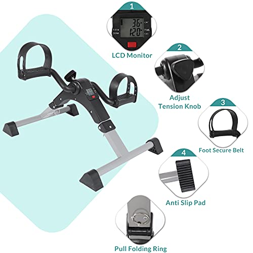 MEETWARM Pedal Exerciser Under Desk Exercise Peddler Arm Leg Folding Mini Stationary Peddler Bike with LCD Display…