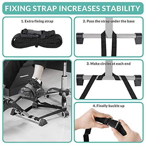 SAFE AND NON-SLIP: An extra fixing strap and the 4 non-slip rubber can increases stability as it prevents friction between the floor and the pedal exerciser. The adjustable 4 hole foot strap can adapt to different sizes of feet. And the design of sponge sleeve can insulated heat to prevent burns from fever as the pipeline because the machine is running too long
