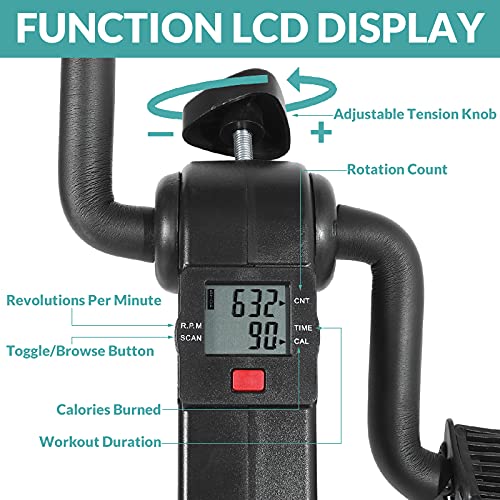 Specification: MEETWARM Pedal Exerciser Under Desk Exercise Peddler Arm Leg Folding Mini Stationary Peddler Bike with LCD Display…