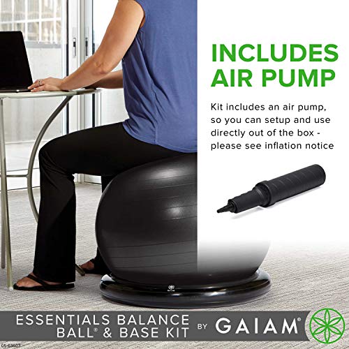 Gaiam Essentials Balance Ball & Base Kit, 65cm Yoga Ball Chair, Exercise Ball with Inflatable Ring Base for Home or…