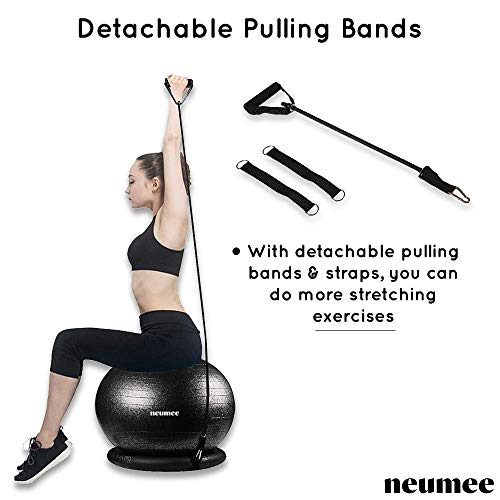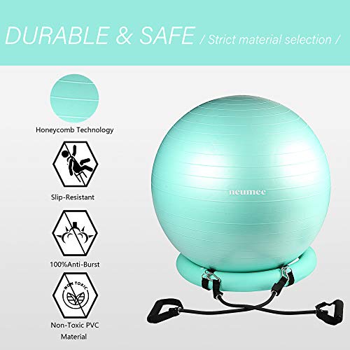 NEUMEE Exercise Ball Chair with Resistance Bands, Yoga Ball Office Chair with Stability Base for Home Gym, Workout Ball…