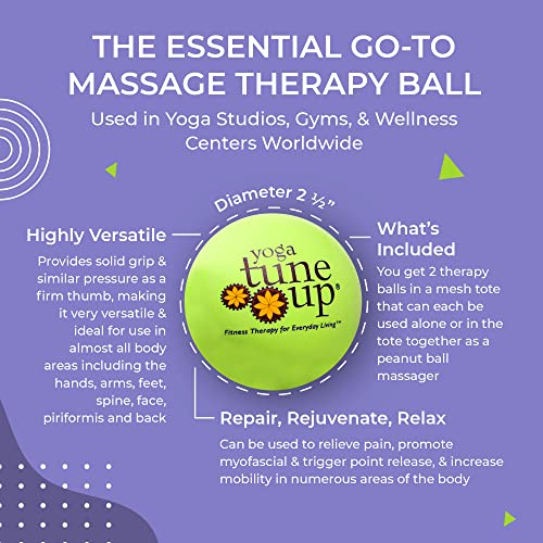 THE ESSENTIAL GO-TO MASSAGE THERAPY BALL: at 2 ½ inches in diameter & with a grippy texture, the original Yoga Tune Up balls are extremely versatile, applying pressure similar to a thumb, that can really penetrate in just the right place & way to provide needed pain relief & release of muscle tension.