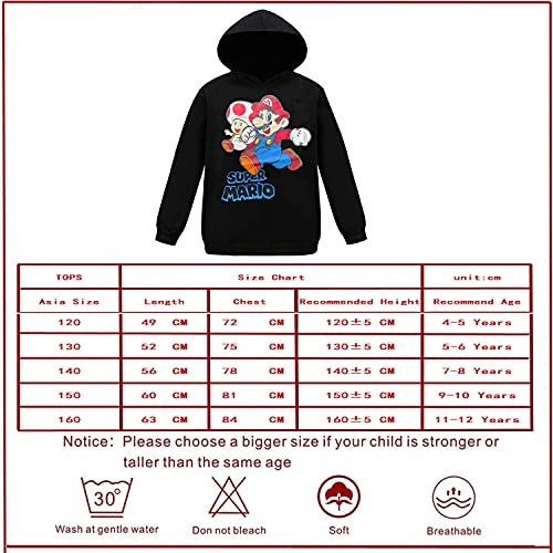 Specification: Boys’ Girls Mario Print Hoodie Super Funny Pullover Sweatshirts for Boys and Girls Tops Gaming Jumper Clothes