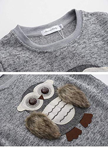 Adorable character sweatshirt – This lovely owl gray sweatshirt is the perfect length for arms and bottom sweep. You can dress it down for play time or dress it up for special events. Throw it on for a walk in the park, running to the store or first day of school.