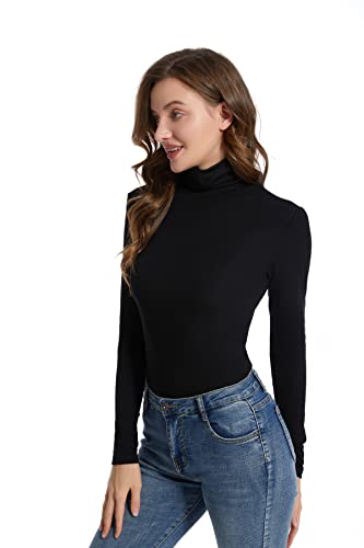💝Black Turtleneck for Women💝 95% Modal/5% Spandex of super comfortable fabric, silky sleek, comfortable and soft. A great option for everyday wear or as an under scrubs piece or loungewear at home. Snug fitting and soft for layering, works great under scrubs, under uniforms, sweaters, blazers, jackets, and coats, would be a staple