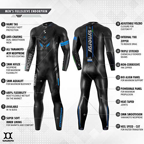 Specification: Synergy Triathlon Wetsuit – Men’s Synergy Endorphin Full Sleeve Smoothskin Neoprene for Open Water Swimming Ironman…