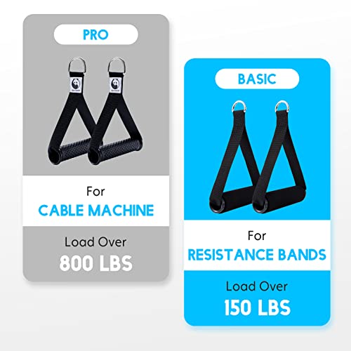 🐼2 Options: Basic Foam handles are for the resistance bands and Rubber pro handles are for the Cable Crossover Smith Fitness Machine. The basic one with the break load of 300 LBS and Pro is 800 lbs. Premium soft anti-skid rubber handle provides a stronger grip. More comfortable for your hands and longer lasting than foam grips.