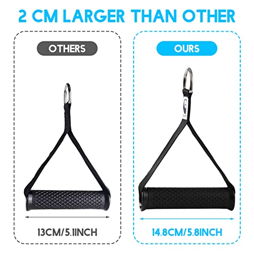 🐼Anti Slip Design: Super grippy softer handles. These are by far the best handles. They offer a solid construction with that really grippy rubber. So no need for chalk. Plus, they don’t slip when wet. Great handles for Total Gym, Total Trainer, Chair Gym, Bowflex home gym, Pilates reformers, all kinds of Cross Cable Machines. Perfect for resistance bands