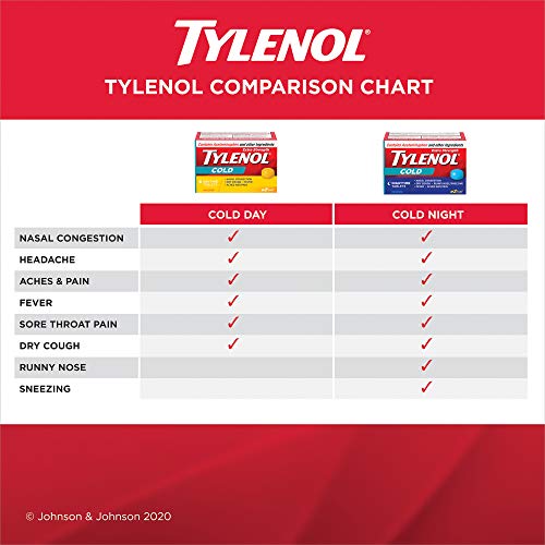 Tylenol Cold Extra Strength Day Time Tablets help relieve your cold symptoms. Get effective relief of symptoms including: nasal congestion, dry cough, fever, aches, and pains. Get back to your normal, whatever your normal is. Each yellow tablet contains 500 mg of Acetaminophen to help relieve pain and reduce fever, 10 mg of Dextromethorphan Hydrobromide to help suppress coughs, and 5 mg of Phenylephrine Hydrochloride to for nasal decongestion. Made in an easy-to-swallow tablet form. To use, Adults and children 12 years and older, take 1-2 daytime tablets every 4 hours as needed. Do not exceed 8 tablets in 24 hours.