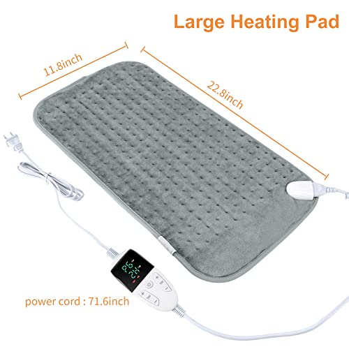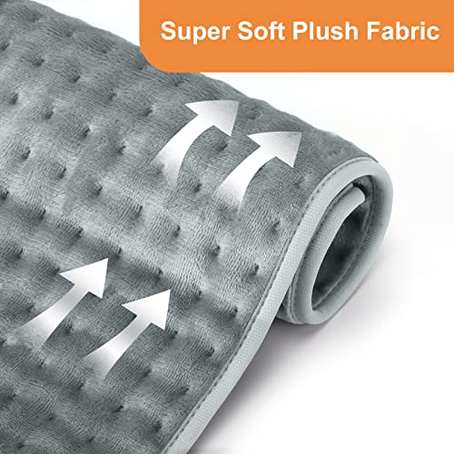 RGZN Heating Pad, 11×22″ Electric Heating Pad for cramps and Back Pain Relief Ultra Soft Large Electric Heating pad with 6 Adjustable Temperature Settings and 4 Timer Settings Machine Washable(Grey)