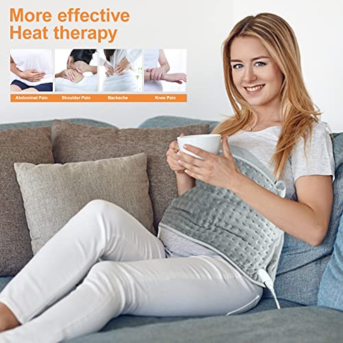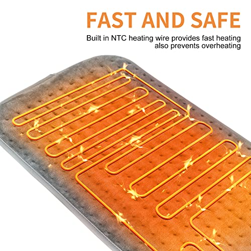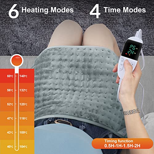 Specification: RGZN Heating Pad, 11×22″ Electric Heating Pad for cramps and Back Pain Relief Ultra Soft Large Electric Heating pad with 6 Adjustable Temperature Settings and 4 Timer Settings Machine Washable(Grey)