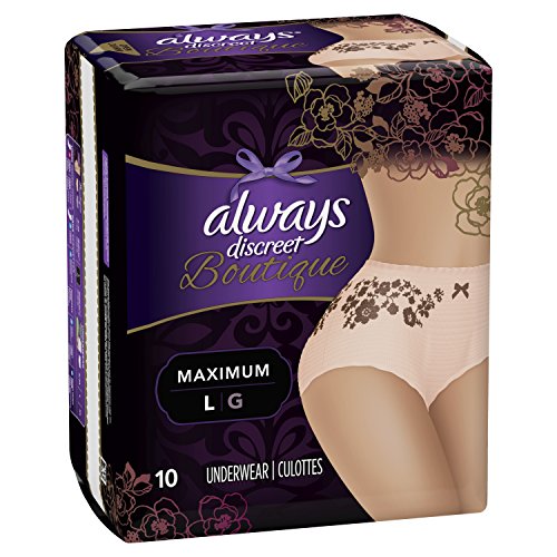 Specification: Always Discreet Boutique Incontinence and Postpartum Underwear for Women, Maximum Protection, Peach, Large, 10 Count…