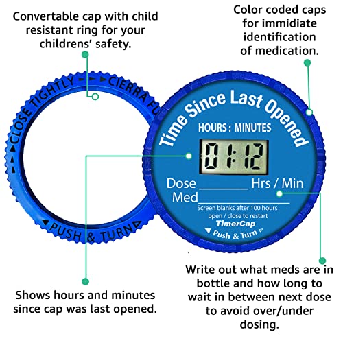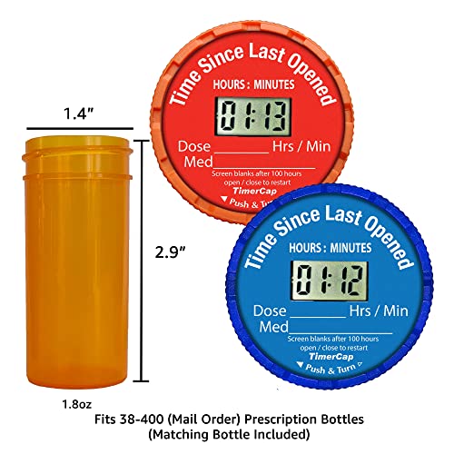 Specification: Timer Caps with Std. 2 oz. Vials (Qty 2) – Pill Organizer & Reminder for Medications