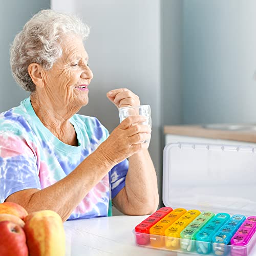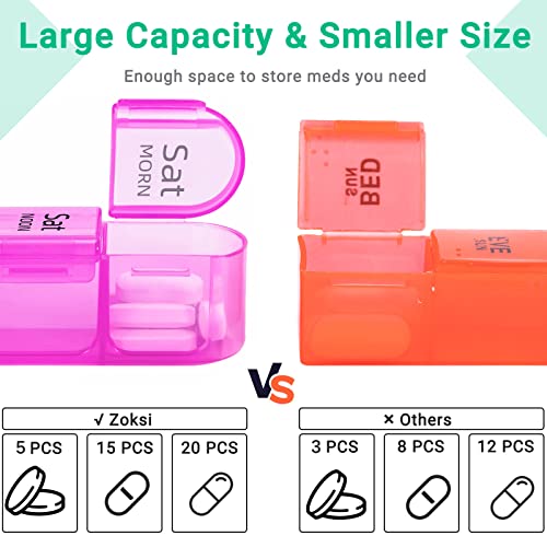 Zoksi Weekly Pill Organizer 4 Times a Day, Rainbow Pill Box Organizer, 7 Day Am Pm Pill Box, Large Travel Pill Case…