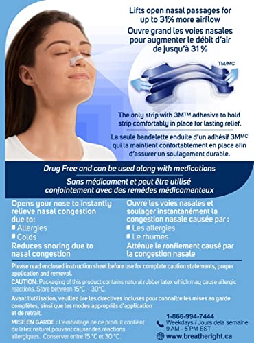 Breathe Right nasal strips relieve your snoring and nighttime nasal congestion. Breathe Right works with your body to improve airflow. Gentle on skin for both adults and kids