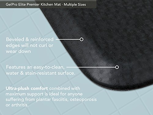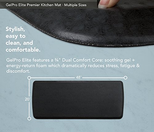 Gelpro elite is 50-percent thicker than GelPro classic and features an exclusive dual comfort core system of therapeutic gel and energy-return foam. Indulge in the extra soft and deep-cushioning support as your-feet rest on the world’s most comfortable floor mat. The unique, conforming feel of gel plus foam actually feels so natural that you forget that you are standing. This revolutionary comfort solution is perfect for anyone suffering from back, hip, knee, leg and foot discomfort, plantar fasciitis, osteoporosis or arthritis. Ideal for use in the kitchen, bathroom, laundry room, craft room and at stand-up desks.