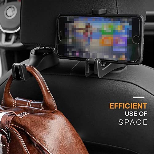 Specification: 2 in 1 Car Headrest Hidden Hook with Phone Holder,Multifunctional Car Back Seat Headrest Hooks,360° Rotation Headrest…