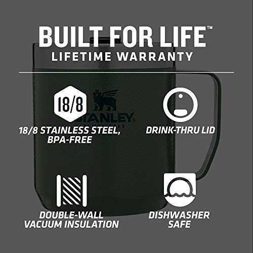 Product 2: MATCH YOUR PERSONALITY:At the campsite, in the office, or on your morning walk to work,the Stanley Legendary camping mug makes a statementwhenever you reach for your lips. Itcomes in classic Hammertone Green, timeless Matte Black, striking Nightfall, and eye-catchingWine. You’ll also love just how easy it is to clean your insulated coffee mug–just place it in thetop rack of the dishwasher. A smooth stainless-steel interior also makes hand-washing a breeze