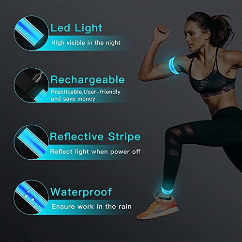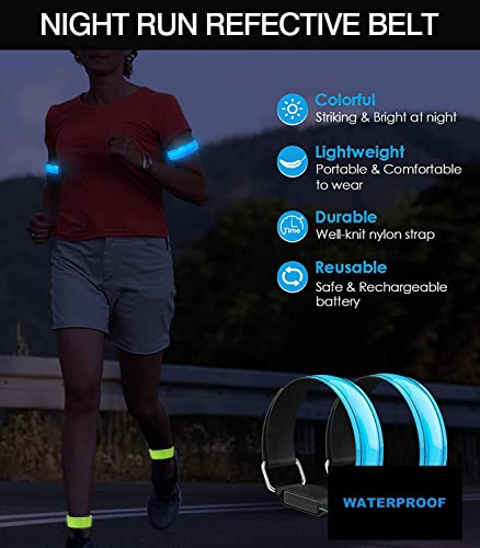 LED Armband Rechargeable, 2-Pack LED Sports Wristbands Arm Light Up Bands with 3 Light Modes Outdoor Running Light for…