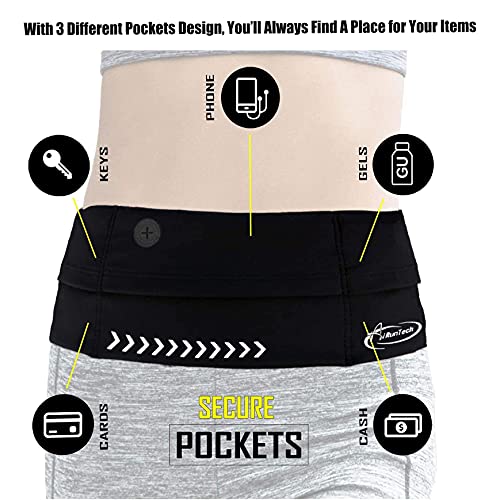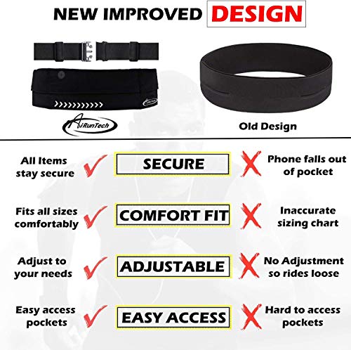 AiRunTech Unisex Running Belt Waist Pack, Travel Money Belt, Fanny Pack and, 3 Large Security Pockets, Fits Phones…