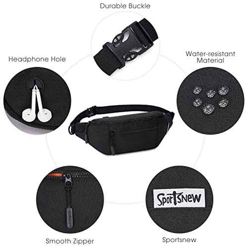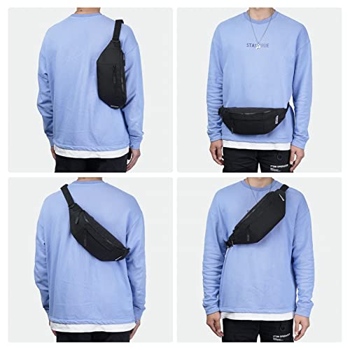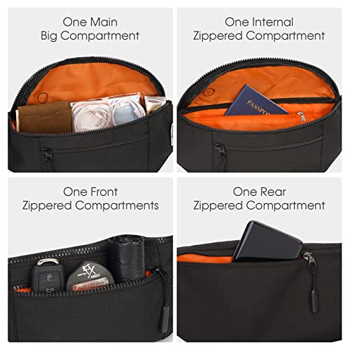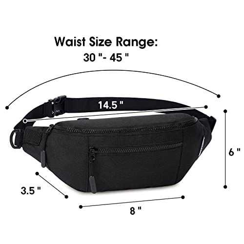 Large Fanny Packs for Women Men with 4-Zipper Pockets Waist Bag for Dog Walking Casual Travel Sport Workout Gift, Black