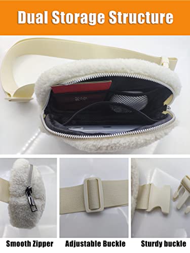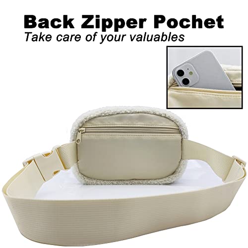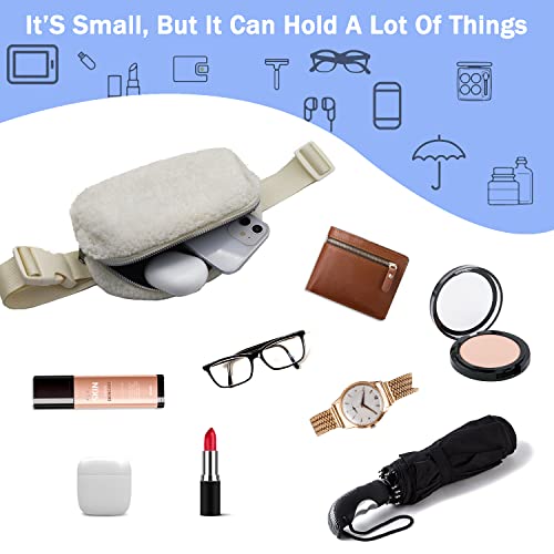 Unisex Fleece Mini Waist Bag with Adjustable Strap , Sherpa Belt Bag Small Waist Bag for Women Fanny Pack Dupes…
