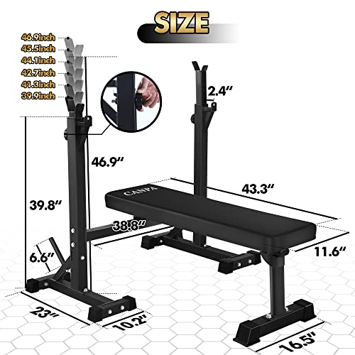 Bench Press, CANPA Olympic Weight Bench with Squat Rack Workout Bench Adjustable Barbell Rack Stand Strength Training…