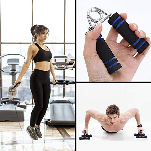 If you don’t have time to hit the gym or if you’re looking for an easy way for a quick workout, this 5 piece workout Set including Hand Gripper Jump Rope AB Roller Push-Up Bar Knee Pad which is a best choice for you!