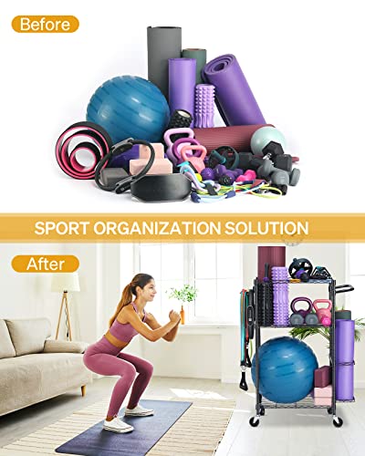 ✨【Gym Equipment Storage】This gym organizer can help to store the storage of various items, such as your yoga mat, yoga Balls, dumbbells, kettlebells, yoga brick, resistance band, towel, foam roller etc. Suitable for many occasions, such as gym, home gym, fitness club and garage. Perfect for fans of yoga workouts.