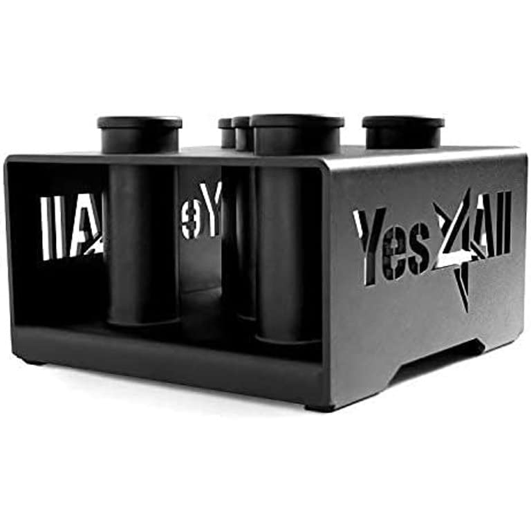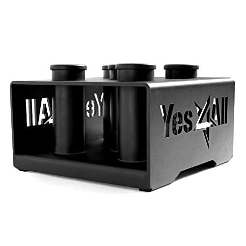 12-INCH LENGTH x 12-INCH WIDTH x 7. 5-INCH HEIGHT: Optimal size with 12” square layout to help save more space, keep your barbells safe and your workout areas organized. No more barbells laying around taking up space and tripping up your steps HEAVY GAUGE STEEL CONSTRUCTION: Made from 30. 86lbs of solid steel, our barbell holder helps keep your bars straight, safe and secure for a long time 5-SLOT PRECISION DESIGN: Pro-quality laser cut components and square layout takes up very little space, allows for easy clean up and organize your gym station MAXIMUM COMPATIBILITY: Designed to fit bars with 2” diameter or less, great for Olympic bars, curl bars, triceps bars, trap bars, dumbbell handles and many more STYLISTIC AND PRACTICAL: The minimalist boxed design makes the holder a perfect choice for those who want both style and comfort, as it’s great to keep the bars stored in upright position as well as increasing safety and stability