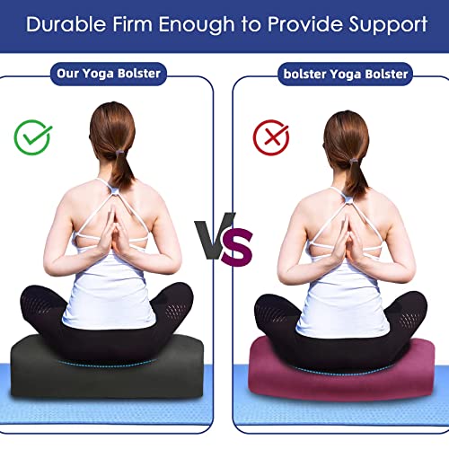 ERGONOMIC DESIGN : FelizMax yoga bolster pillow provide optimal alignment of the spine and back support. Filled with granular cotton that provides long lasting durability and structure. Rectangular yoga pillow helps you to reduce pressure on joints, provide lumbar relief, deepen stretches, and grant total relaxation when exercising, meditating, sitting on the floor/chair or yoga.