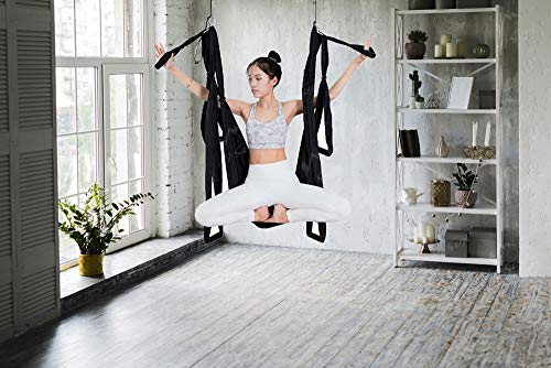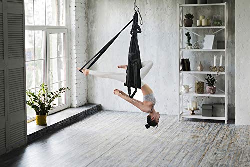 Anti-Gravity Aerial Yoga Hammock Swing – Six Handles Sling Pilates Set Kit Include Steel Carabiners Extension Straps No…